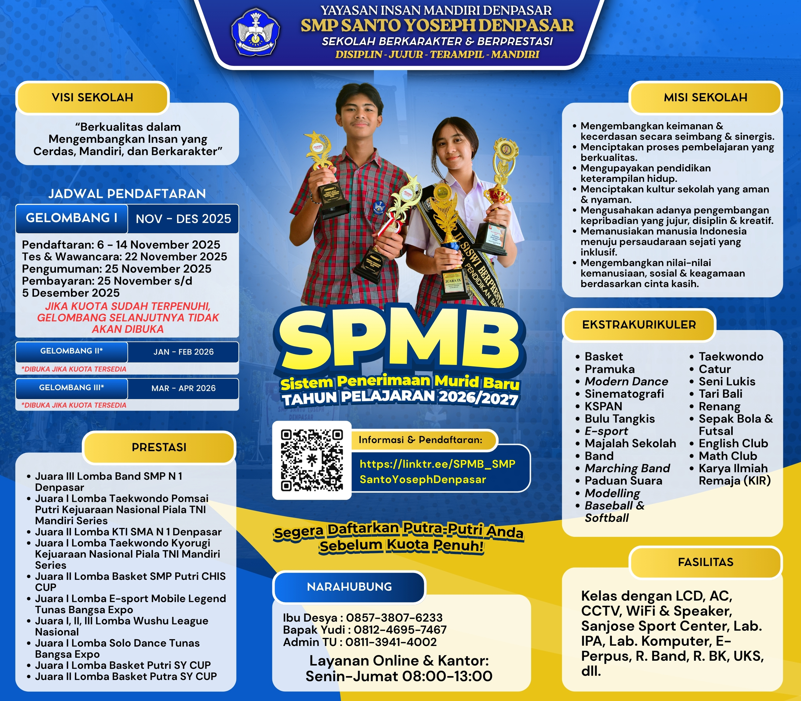 Perayaan HUT ke-65 ini bukan sekadar acara tahunan, melainkan refleksi sejarah dan pijakan untuk masa depan. Dari kebersamaan seluruh keluarga besar SMP Santo Yoseph Denpasar, lahirlah karakter dan prestasi yang akan terus gemilang.